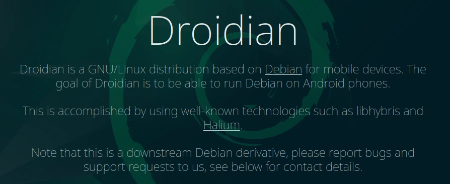 Despite being closely linked, the Droidian installation process differs from Ubuntu Touch. (Screenshot of https://droidian.org/)Â